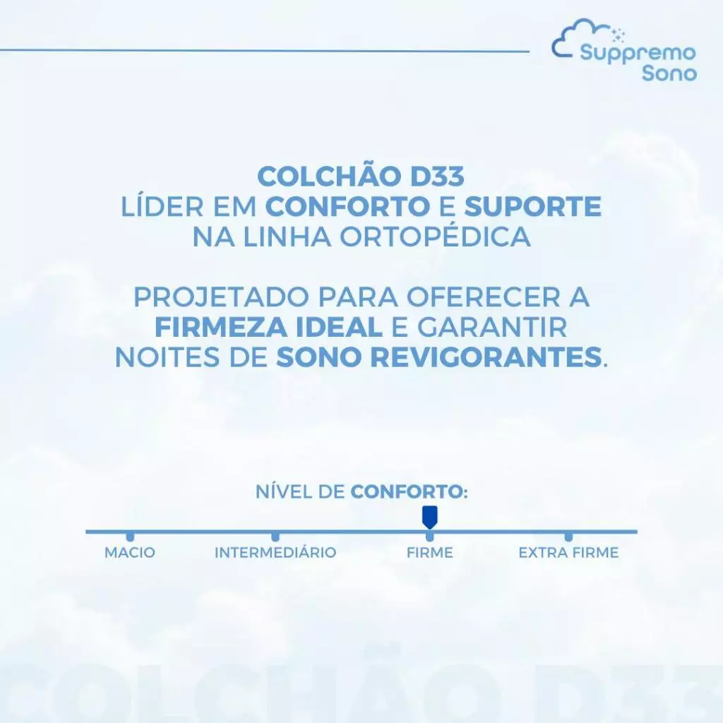 A espuma D33 é ideal para quem busca mais suporte, maior durabilidade e melhor sustentação do corpo, sendo indicada para uso diário.