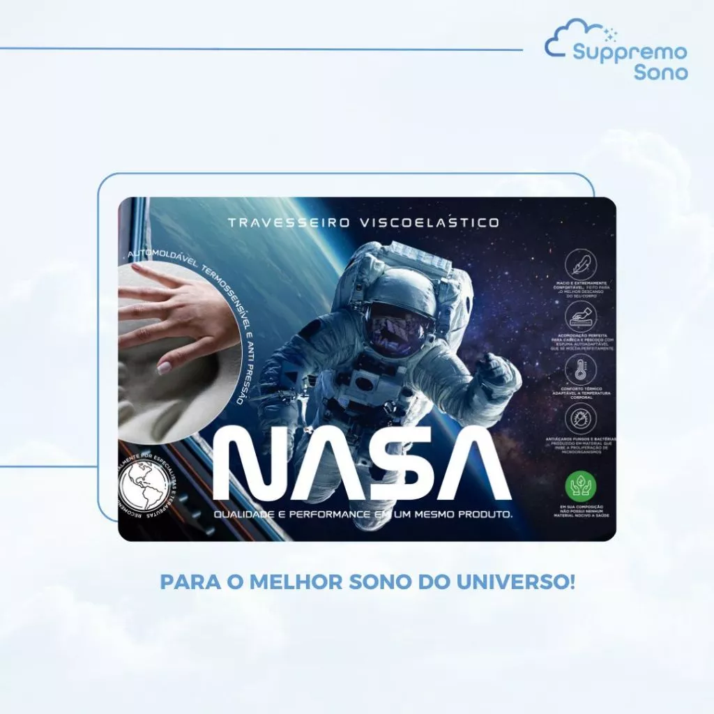 Sim! O travesseiro é feito com espuma viscoelástica de verdade, com tecnologia inspirada nos estudos da NASA. Ele se adapta ao contorno do seu corpo e retorna lentamente ao formato original.